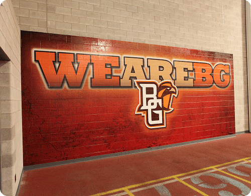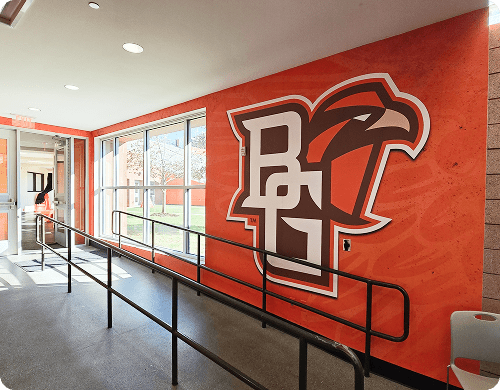 Bowling Green State University has partnered with us on multiple projects to enhance their athletic facilities, academic spaces, and event environments. Through custom graphics, large-scale branding, and facility transformations, we’ve created impactful visuals that reinforce BGSU’s identity and inspire students, athletes, and visitors alike.